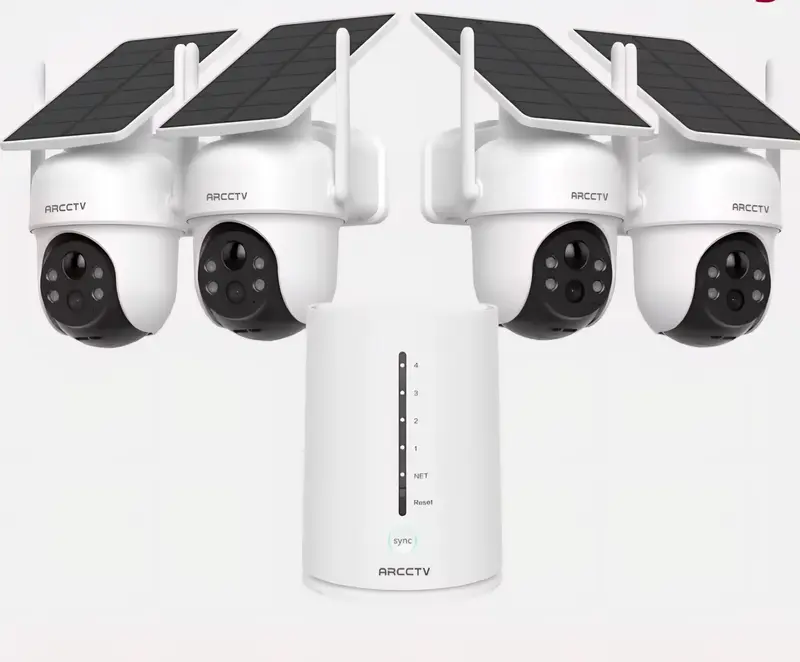 סט 4 מצלמות אבטחה סולאריות מסתובבות 360 מעלות